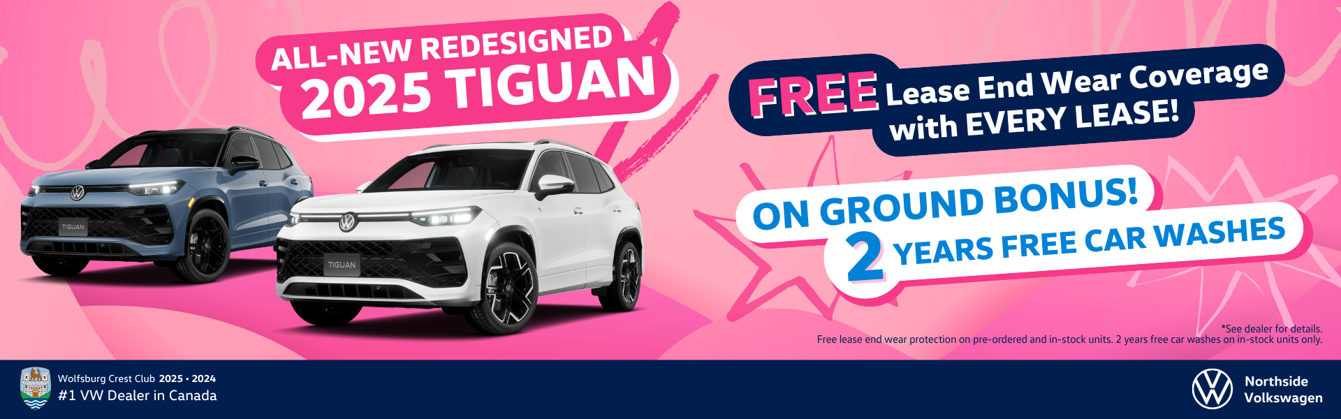 With a stunning exterior redesign, the 2025 Tiguan boasts refined proportions, an upright stance, and a premium fit and finish in every detail. Choose from a range of stylish new alloy wheel designs, including 17”, 18”, and 20” options, to make a statement on the road.
