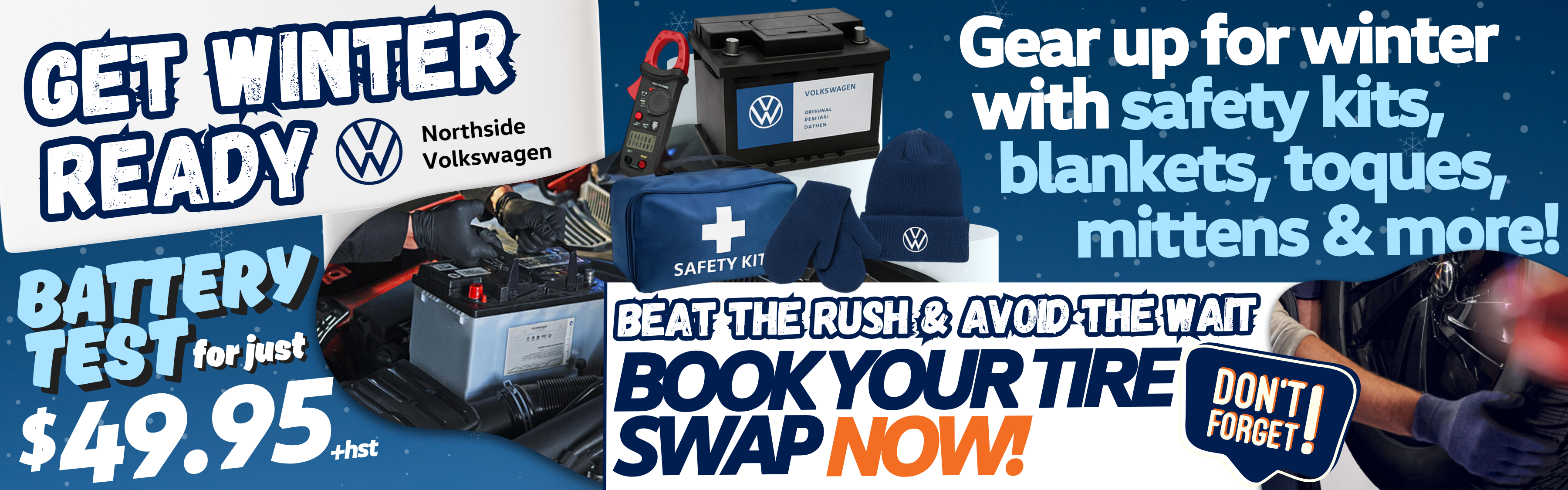 Price match offer is open to residents of Canada purchasing tires that meet the specifications for their VW vehicle, from an authorized Volkswagen dealer. Customer must present a written, eligible competitor quote for the same tire that specifies tire brand, model, size, SKU/part number, load rating, speed rating, and road-hazard coverage. Eligible competitors must (1) sell and install tires; (2) be located within 50 kilometres of the authorized Volkswagen dealer; (3) be located in Canada; and (4) have the tires quoted in stock. Quotes marked as special orders or quotes from warehouses or warehouse clubs are not eligible. Other conditions may apply. See authorized Volkswagen dealer for details. Offer ends December 31, 2025, and is subject to change or cancellation without notice.